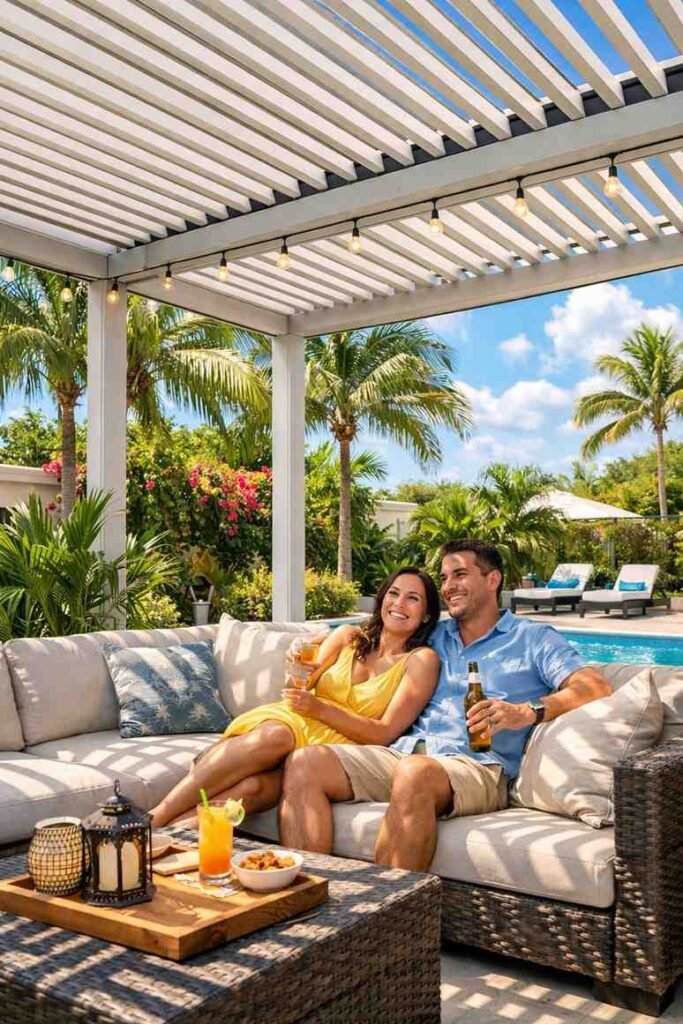Create a stunning outdoor living area with our custom backyard pergolas. Whether you choose wood or aluminum, we design and install to match your style & needs. Check out our backyard pergola Miami design ideas and backyard pergola design Miami FL to enhance your backyard.